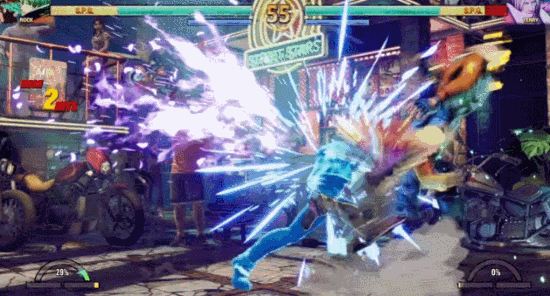 看到这里,可能许多人会以为其会像《拳皇》中的“爆气”那样会为角色提供强大增益,但事实却恰恰相反,在过热状态下,角色将在一定时间内无法使用REV技能,并且当你格挡对手的攻击时,你的防御槽(健康槽下面的蓝色槽)会减少,而当防御槽降到零时,角色将会进入破防状态,大幅提升受击僵直。