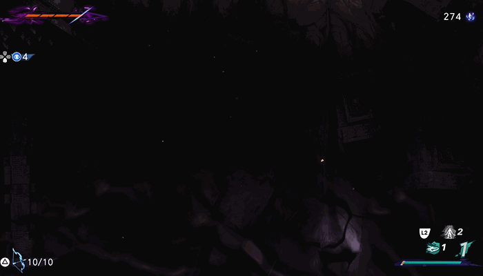 在进入DLC之后,角色的属性会立即被“削弱”,不仅生命值被削减到三格,血药也会被没收。基本回归了游戏开头的“裸装”状态。加上DLC的存档点也较为缺乏,一开始很容易被虐得死去活来。流程中,我不得不把能回血的炎火爆发常驻在技能栏里。很多时候角色也不是被怪物打死,而是死在各种坠落和尖刺伤害之中。只能说制作组在DLC的难度设计上也有点放飞,确实给玩家上了强度。