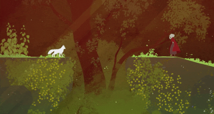 此时的它,就像现实中存在的小动物那样可爱而弱小。每当要跨过远一些的高台时,它总会踌躇几次、退后几步,再助跑努力一跃,有时还会不慎爪子打滑,只能抓着高台边缘奋力求救。而当你将它拉上来后,它则会开心地跳脚转圈——《Neva》不惜用充满了大量细节的动画去表现这位游戏的真主角的一举一动,来让它在玩家眼中能够尽可能活灵活现一些。