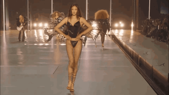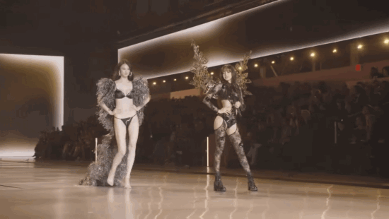 维密大秀上的三位中国超模 放眼一看都长腿的动态图