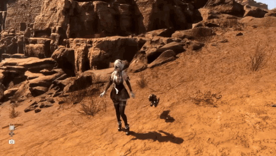 这个设定来自《尼尔:机械纪元》中的成就“你在干什么”,游戏中2B发现玩家在偷看裙底时会自动羞涩跑开,不让玩家继续看。此外,在《尼尔:伪装者》重制版中还有一个“不惧危险”成就,需要玩家拉低视角偷看角色“凯尼”的裙底十次。性格暴躁的凯尼发现自己被偷看后会一脚将玩家踹进Game Over界面,非常有趣。