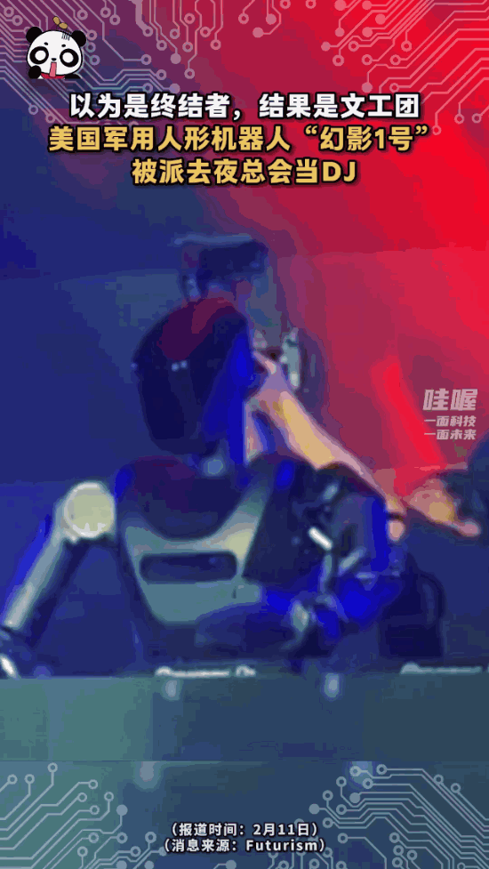 过年期间,美国初创公司“基础机器人实验室”开发的军用人形机器人“幻影1号”出现在了旧金山一家夜总会,化身DJ进行了首次公开表演,时长达30分钟。