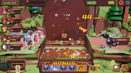 《推币勇者》是一款融合了推币机玩法的RPG半放置类游戏。