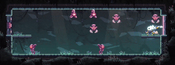 这是一款快节奏横版动作射击Roguelite游戏。你作为在人类被机械灭绝后被唤醒的机器人,诺瓦,需要在看守森严的地下遗迹中倚靠灵活的身手和强力的枪械,突破重重封锁直达核心。