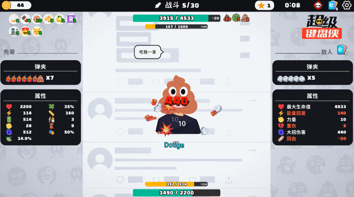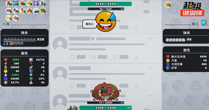 对于这些梗,《超级键盘侠》选择照单全收,别管梗老不老,有意思的就完事了。游戏本身的玩法,是让玩家们不断通关,挑战不同的BOSS。而真正的玩梗,从选人界面就开始了。