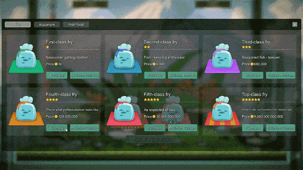 赛博养鱼,当然要养点不一样的!说不定某次观察鱼缸时会惊喜的发现某条本来不起眼的小鱼突然长成了隐藏种类的鱼种!解锁稀有的闪光、多彩形态!还有几率养出鱼王!
