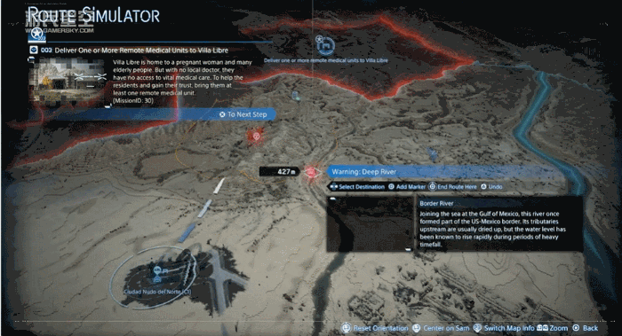 Ring Terminal 类似初代的 “智能手环”,科技的进步让山姆将其迭代为佩戴于拇指的 “智能戒指”,仅需标志性的点赞手势就能快速调出悬浮全息界面。它对玩家而言,相当于整合了任务、货物管理、地图、任务状态、系统设置等功能。在送货方面,其最大价值体现在本作中得到优化的 “路线规划系统”。