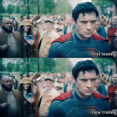 正如外媒Comicbook消息,在预告中,原本被愤怒人群投掷易拉罐砸头的超人,在被命中时有一个非常明显的眨眼动作,而该动作在新版预告中被移除——超人神情始终坚毅。