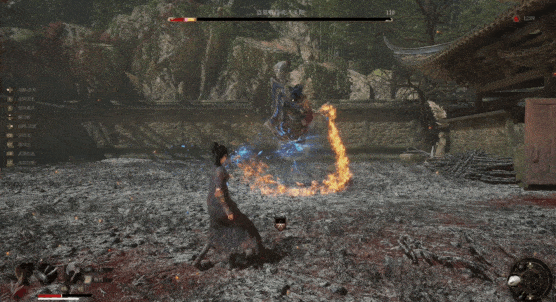 而在试玩时坐在我旁边的老师则更加“纯粹”一些,坚持用初始武器长刀跟BOSS进行交互,依靠精准的完美闪避和长刀的战技“打刀式”(也就是弹反)硬碰硬。
