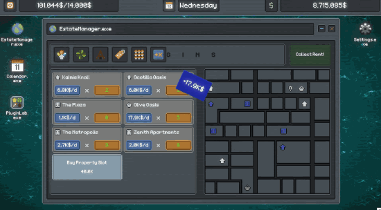 当你的插件产生共振,见证房租如何以疯狂形式开花结果!此刻,请优雅的点击收租按钮,享受数字跳涨的机制快感!