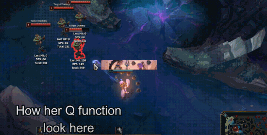 而Q技能被动会让普攻附加额外的魔法伤害,主动效果则类似于艾希的Q,需要通过攻击进行叠层,攻击英雄时叠两层。叠满8层后即可开启,提供最高60%的攻速并让普攻造成额外的魔法伤害,并对目标周围的敌人造成30%攻击力的物理伤害。(可以想象这个技能在打团时的AOE能力有多恐怖)