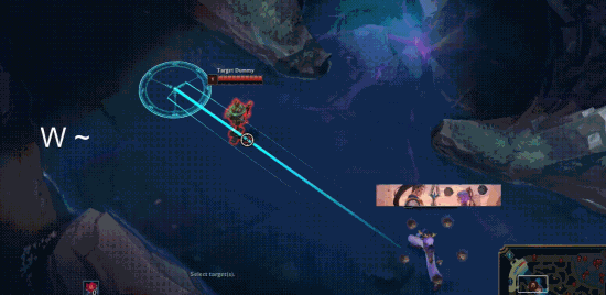 W技能会扔出一枚两枚旋转的灵珠,在击中敌人时对其造成持续衰减的99%减速效果,并减少弹道速度不断造成伤害,最终在技能末尾处爆炸。该技能的伤害判定次数与攻击速度挂钩,攻速越快伤害频率越高。