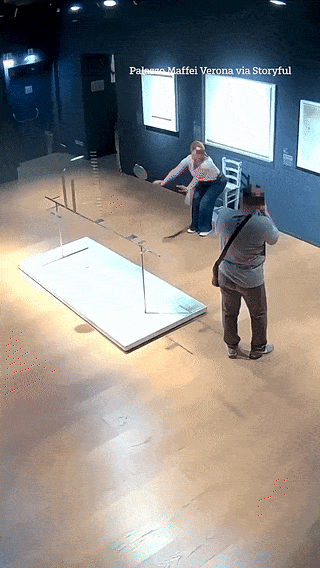 据环球网消息,意大利维罗纳市马费宫博物馆近日在网上公布了一段馆内的监控视频。根据视频画面:一名游客为追求拍照效果,公然无视规定,坐上仅供观赏的珍贵艺术展品“梵高椅”,导致其当场垮塌。
