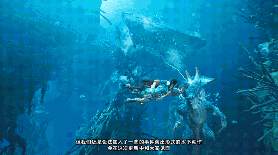 在本次发布会公布的PV中,展示了无数老玩家心心念念的“水战”环节。不过根据介绍,在水下猎人并不能使用武器,只能借助“演出形式的水下动作”对怪物进行攻击。(例如用钩爪触发落石)