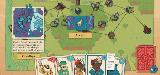为了带来更精彩的卡牌战斗,游戏用不同的小动物来作为卡牌原型。你可以选择数量越多越强的蚂蚁军团,或是死亡后可以断尾再生的蜥蜴士兵,还有一人便能独当一面孤狼勇士,以及存在着高风险的老鼠爆破手。不一样的动物特性能让你每一局都能获得不一样的战斗体验。