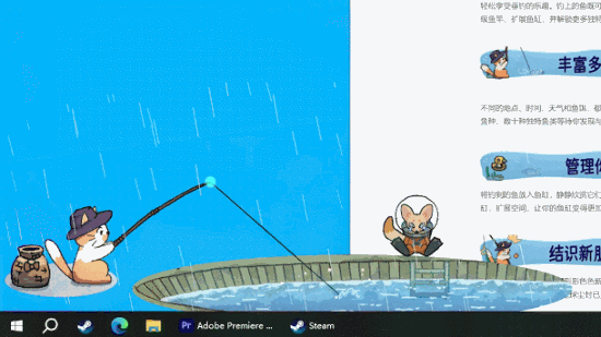 《猫猫钓游记》最大的特色在于它的“无打扰”设计。游戏提供三种显示模式:全屏模式适合想要专注体验钓鱼乐趣的玩家;桌面壁纸模式让游戏直接融入你的电脑背景;而窗口模式则可以隐藏UI和背景,只留下小猫菲舍在你的屏幕一角悠闲钓鱼。无论你是在写报告、敲代码,还是单纯想找点轻松的娱乐,菲舍都会安静地待在那里,偶尔甩甩鱼竿,钓上几条小鱼,成为你工作间隙的治愈瞬间。