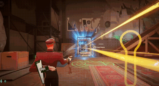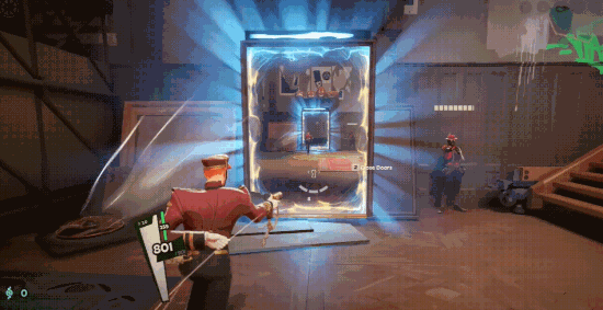 从动图中可以看到,这个传送门的门框中带有蓝色和金色的“漩涡”特效,其视觉表现与功能都和V社旗下《传送门》系列的传送门非常相似,很可能是在致敬这一经典神作。
