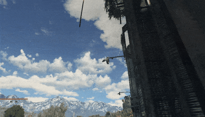 得益于技术的进步和与之对应的“纵深感”地图设计,二代在跑酷流畅度与环境元素的运用上更加成熟:无论是高楼间“蹬墙跳接空中转体后抓绳滑行”等进阶的跑酷操作,又或者是滑翔伞、跳床等更多道具加入,都为系列未来的跑酷玩法奠定了新的基础。