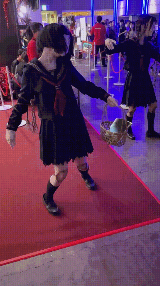 在今年的东京电玩展上,科乐美为全新恐怖作品《寂静岭f》设立了专属展区。现场的Showgirl化身游戏中那位诡异的少女——身着水手服、脖颈歪斜、面色惨白宛如稻草人,不仅造型高度还原,就连动作神态也模仿得惟妙惟肖,可谓相当敬业。