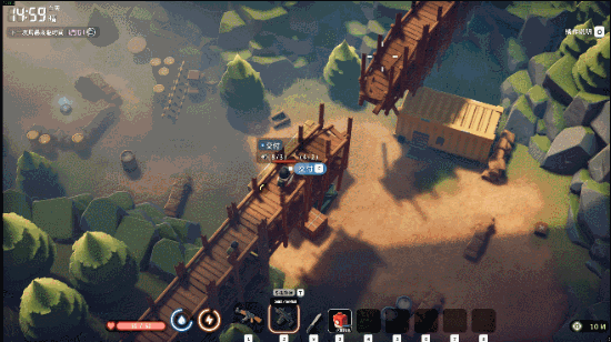 比如在游戏前期装备不足的情况下,你很难与夜晚的机械蜘蛛碰一碰,因此在探索时总要考虑剩下的时间是否足够支撑角色在天黑前跑到撤离点安全撤离。而在某一局中,我偶然发现在修复一个断桥后,便可直达资源相对丰富的区域搜索,省去了绕远路的时间,大大提升了摸图的效率。