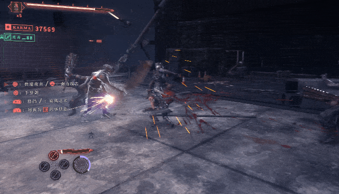 但我想大家应该都会更喜欢它在“乱杀模式”中的表现。本作新加入的“乱杀模式”,类似《战神》的“斯巴达之怒”,通过同时按下左右摇杆即可开启,绝对包爽。该模式下,使用奴延鸟之型的特定攻击,即可直接“血杀”(秒杀)除Boss以外的所有敌人,血杀时还会有张力超强的特写镜头+切字演出。在乱杀模式结束前,玩家还可以随时再次按下左右摇杆,施展一次范围更广的终结血杀攻击。