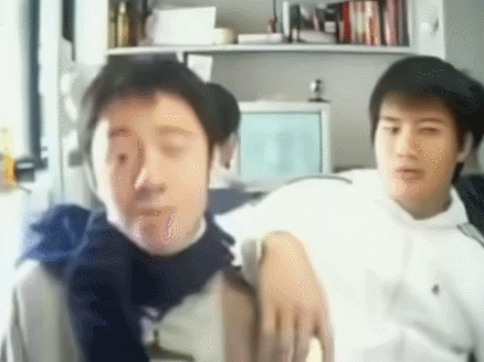 前奏响起,两位年轻人就像是哼哈二将一样盯着电脑摄像头,不动如山,仿佛是上演什么静止画面——要不是背景音里还放着熟悉的音乐,你甚至都怀疑面前的网卡了。