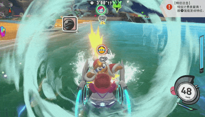 而当我真正玩到《卡比的驭天飞行者》之后,发现这种顾虑纯属多余。“卡车”绝对不是传统意义上的赛车游戏,定位和“马车”也完全不同,它更像是赛车版本的“大乱斗”。实际上,本作也的确是由《任天堂明星大乱斗》原班人马——樱井政博所在的Sora工作室与万代南梦宫合力开发。