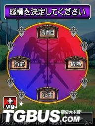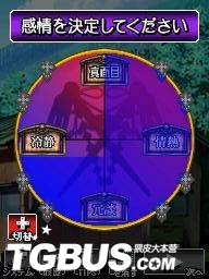 在游戏中,有时候会出现“情感选择系统”,实际上也就是个变相的选项系统。用触摸笔点击情感盘的某个部位,就可以决定用何种情感来对待面前的事件。实际上利用剧情树系统再次触发这个情感盘的话,盘上有些部位颜色会变为蓝色,只要点击颜色正常的部位就可以触发不同的剧情了。