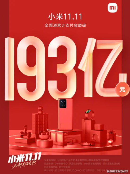据小米公司称,今年小米双十一全渠道累计支付金额破193亿,再次感谢每一位米粉的喜爱与支持,期待与你们一起创造更多奇迹!