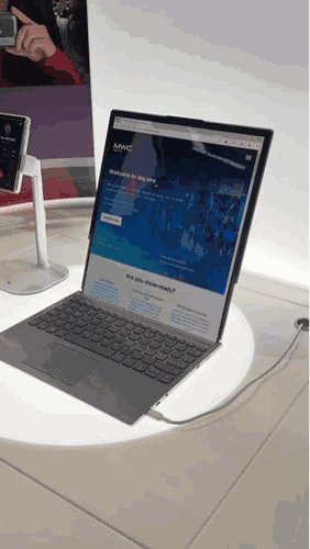 第一眼看上去,这就是配备12.7英寸4:3屏幕、分辨率为2024 x 1604的传统笔记本电脑。但是键盘下暗藏玄机,按下按钮就可将屏幕延展至15.3英寸,变成8:9比例,分辨率为 2024 x 2368。目前展示的仅为原型机,而且这种技术的耐用程度有待商榷。