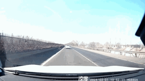 视频显示,在黄石高速上,高德地图小团团语音包刚说完:“后方有快速车辆逼近”,刚说完没一会儿,一辆白色大众迅速从右边车道疾驰而过。