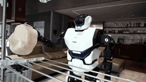 在AWE上,“夸父”不仅展示了跳跃、快走等技能,还带来了洗衣、浇花、插花、晾衣服等家务成果。