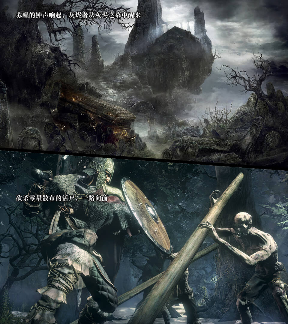 有一天,某棵巨树之下出现了最初的火,世界上就有了光,有了黑暗,也有了生与死和基本的法则。伴随着最初之火,有生物从黑暗中诞生,这些黑暗生物并不是人类或者所谓的诸神,而是类似亡灵的死者:不死人。