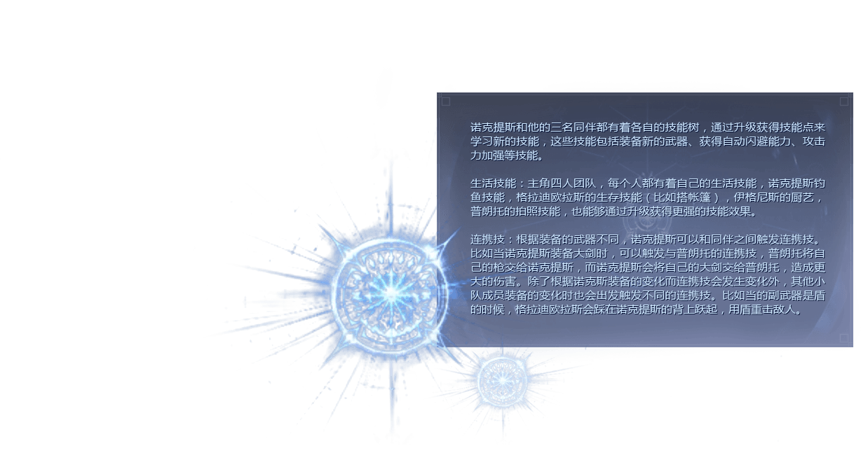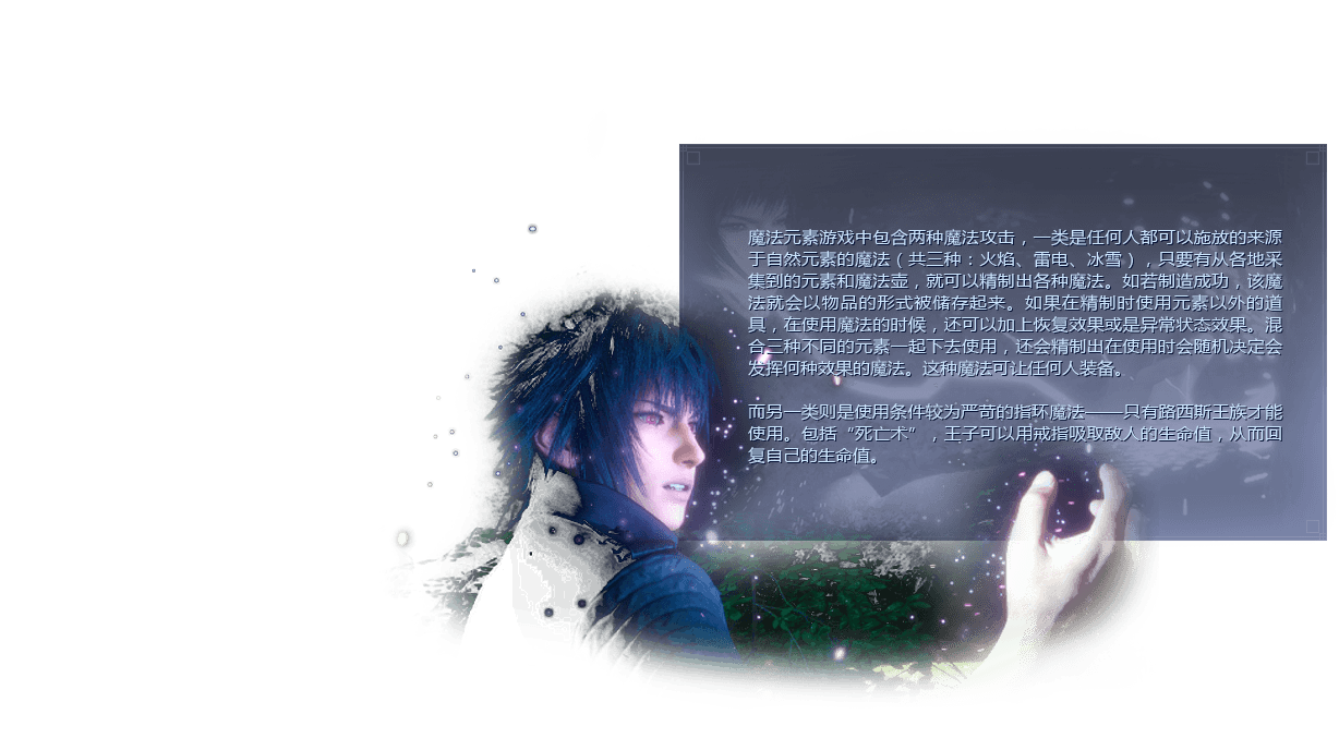 在《最终幻想15》的世界漫游时,会碰到各式各样的怪物以及强力的BOSS,而与怪物的战斗是无缝进行的。战斗中只有诺克提斯是唯一可操控角色,不过可以在战斗中给团队其他成员下达相应的攻击指令。在即时战斗中,还可以利用等待模式,将时间冻结,在静止的世界里切换攻击目标,锁定或者针对敌人的致命部位进行攻击。若想详细了解野外战斗,可以观赏以上战斗介绍视频。