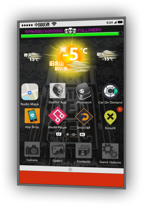 可以管理你的任务,当你接收到DedSec的活动时,你可以通过这个App进行追踪,在地图上可以看到目标点。