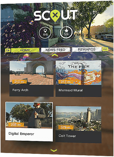 你以一个游客身份进行游戏时,通过它可以发现附近的地标和景点,前去拍个照传到网上作为纪念吧。