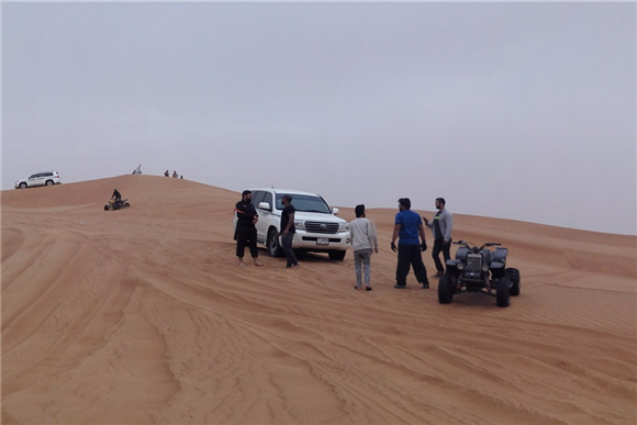 笔者乘坐的悍马在沙漠中行驶的很稳,但随着车辆不断起伏,满天的黄沙拍打在车窗上,我们不断从一个个沙丘爬升,再重重飞出。我的手死死握着把手,心脏随着一次次起伏剧烈跳动,在自然地狂野和机械的怒吼中,一切似乎都变得不再重要。环境总能在悄无声息中改变一个人,在这样的境遇下,再胆怯的人都会变得豪迈,尽管明天我们就会启程回国,尽管这只是人生中一次短暂的旅程,但这份短暂的狂野和激情却必定会成为记忆中一张难以遗忘的旧照片。而这,大概就是我此行最珍贵的收获。