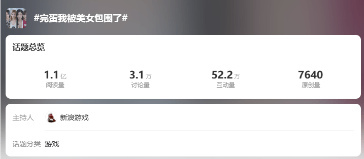而源于现实,又“为爽而爽”的科幻片剧情引起了社区平台的广泛讨论,使得游戏拥有了足够的话题度。随着游戏的热度升温,游戏发售一个月后,微博上#完蛋我被美女包围了#话题阅读量已经突破一亿。