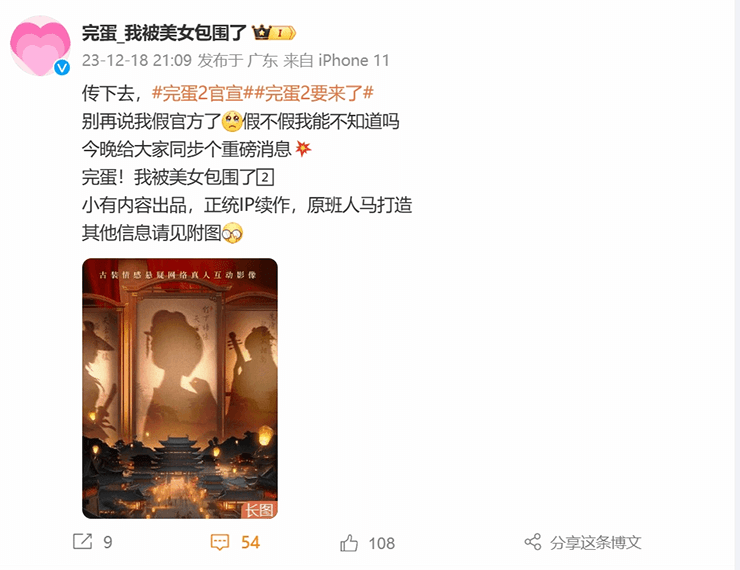 不久前,《完蛋2》已经正式官宣。《完蛋!我被美女包围了2》为小有内容出品,为《完蛋!》的正统IP续作,由原班人马打造。从官方提供的信息图来看,本作为古装情感悬疑网络真人互动影像。