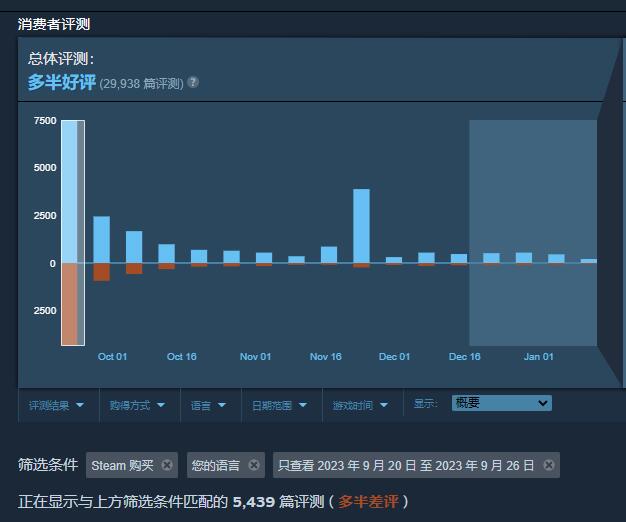 为了应对差评轰炸,Steam从几年前开始就已经引入并完善了一套评论过滤体系,玩家在查看游戏评论时可以在商店页面看到好评和差评的历史趋势,一些与游戏无关的跑题评论也会被系统过滤,可以在一定程度上维持评论区的秩序。