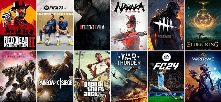 《荒野大镖客:救赎2》 《EA SPORTS(FIFA 23)》 《生化危机4(2023)》 《永劫无间》 《黎明杀机》 《艾尔登法环》 《装甲核心6:境界天火》 《彩虹六号:围攻》 《GTA5》 《战争雷霆》 《EA Sports FC 24》 《星际战甲》