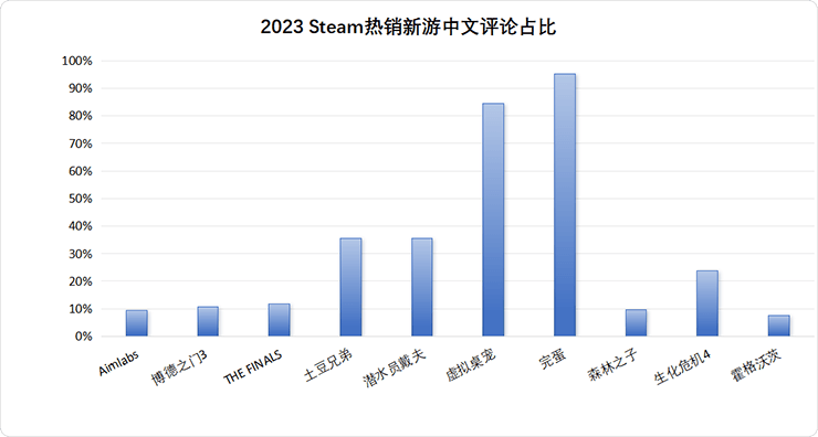 据统计,2023年中,讨论度较高的游戏中,中国玩家的评论数量普遍占到了10%以上。但按照简体中文活跃玩家在全球活跃玩家中25%左右的占比来说,中国玩家仍属于相对沉默的一方。