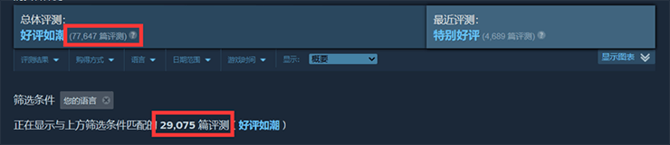 Steam在显示游戏评论时,会优先根据玩家账号设定的语言进行筛选,优先选取玩家可以读懂的语言显示。对于今年的Steam热门新作来说,中国玩家的声音已经不可忽视。