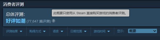 Steam设置“好评率”的目的,是为了在一个注重文字内容的评价体系中,将用户的意见进行整合筛选,以数值的形式呈现玩家的整体态度。而为了避免粗暴的统计造成的数据失真,我们可以看到Steam官方对“好评率”这一数据也进行了一定的修正。
