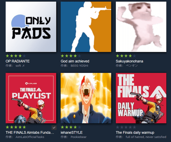 《Aimlabs》中针对不同FPS游戏的创意工坊物品
