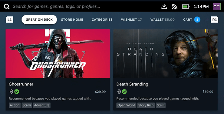 不过Steam Deck商店也会依据兼容程度来影响产品的曝光程度,完美兼容的游戏会被列入专属商店分区进行曝光