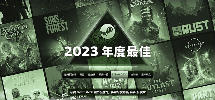 而其他诸如V社对Steam Deck的大力推广活动更是为其铺开销路的努力锦上添花。在发售之初,V社就搞过“G胖亲自上门送Steam Deck”这种活,而在2023年的Steam热销榜中,V社专门为Steam Deck留下了一个专门分区,将SteamDeck上的游戏数据也单独列了出来,厂商和玩家都可以借此了解到自家游戏在Steam Deck上的表现,从而针对该平台作出相应的优化政策。