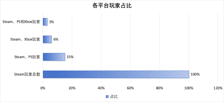 根据Steam公开数据测算,Steam国区玩家的规模约3800万,这个数字相当于中国Play Station玩家数量与Xbox平台中国玩家数量之和的两倍。在这近3800万的国区Steam玩家中,同时也游玩Play Station平台游戏的玩家占比为15%,使用Xbox平台的玩家则占比6%,而在这本就凤毛麟角的“双修”玩家里,还有近3%的玩家选择了“我全都要”,同时对Steam、Play Station与Xbox这三个平台的游戏情有独钟。