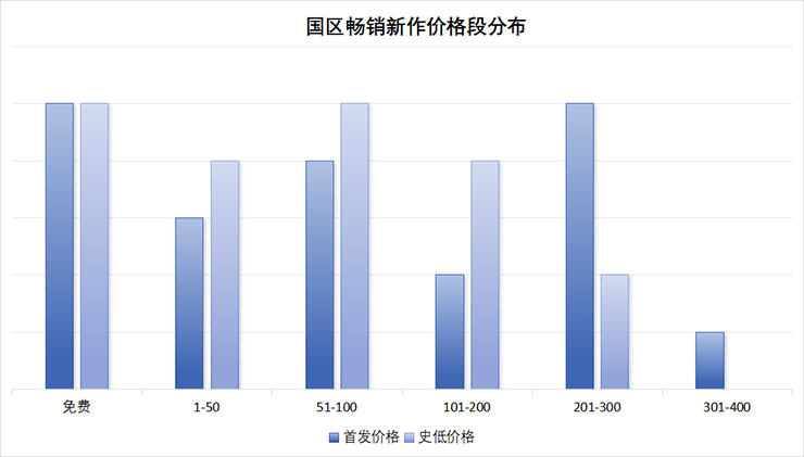 这一点也体现在国区玩家们对购入价位的敏感度上。刨去《Aimlabs》《THE FINALS》以及《虚拟桌宠模拟器》等免费游戏后,我们可以看到上榜的游戏中,有一半的首发价不到200元人民币,而在配合史低折扣后,就只有《博德之门3》这一款游戏的价格仍然超过了200元人民币。考虑到折扣对玩家购买意愿的巨大促进作用,我们不难看出,除了少数口碑、质量均为上乘的3A大作外,大多数的国区Steam玩家愿意接受的价格区间在200元以下。